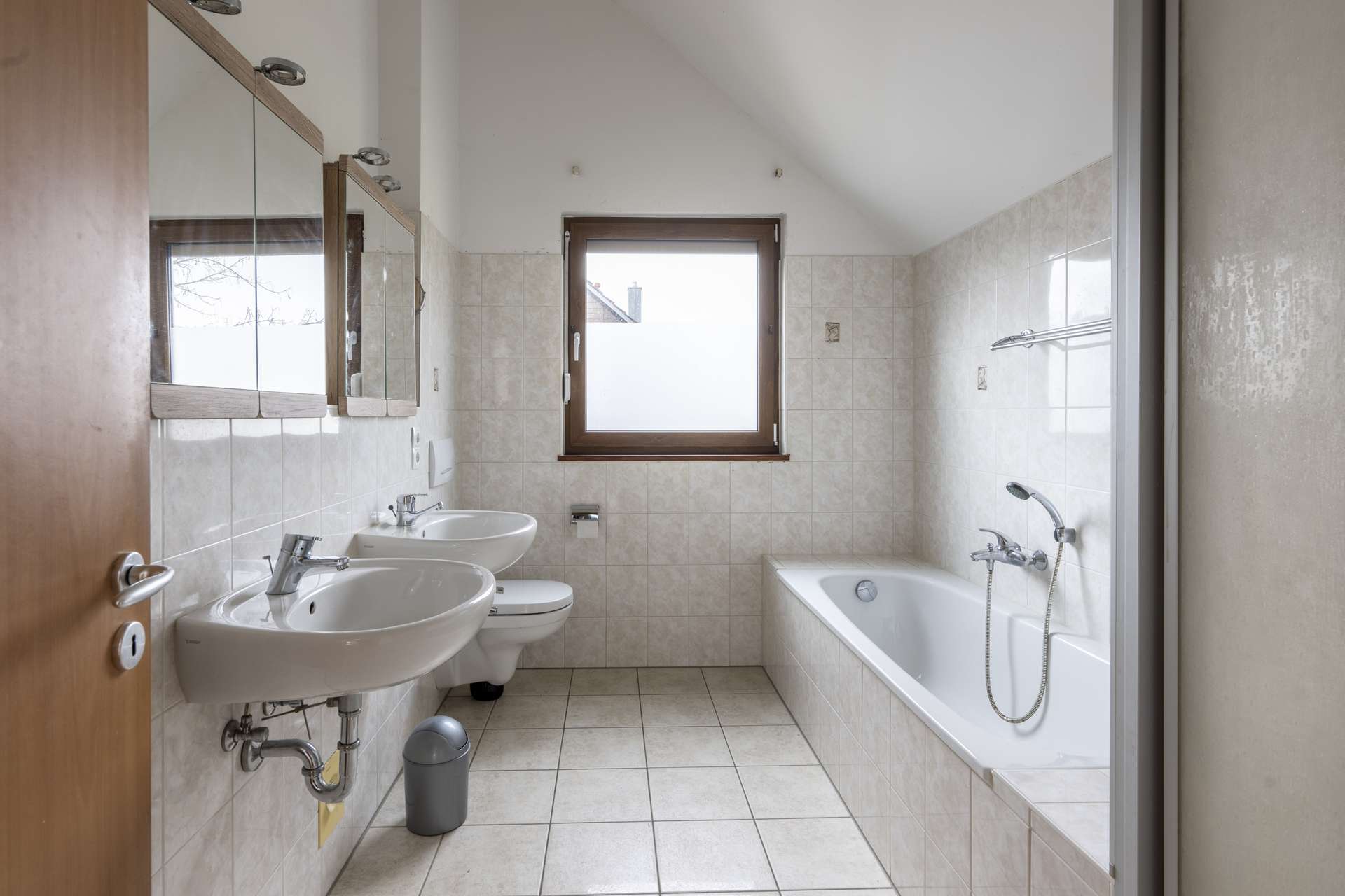 – Badezimmer: Das moderne Bad ist mit einer Wanne, einer Dusche und einem Fenster ausgestattet. Zusätzlich gibt es ein Gäste-WC mit Fenste im Erdgeschoss.