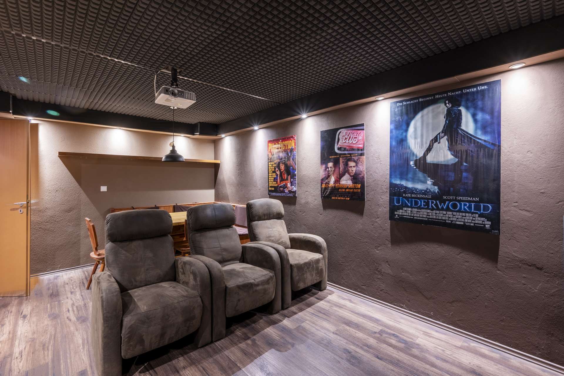 – Heimkino: Der Keller beherbergt ein Heimkino mit bequemen Kinostühlen und einer gemütlichen Sitzecke, ideal für Filmabende mit der Familie oder Freunden.