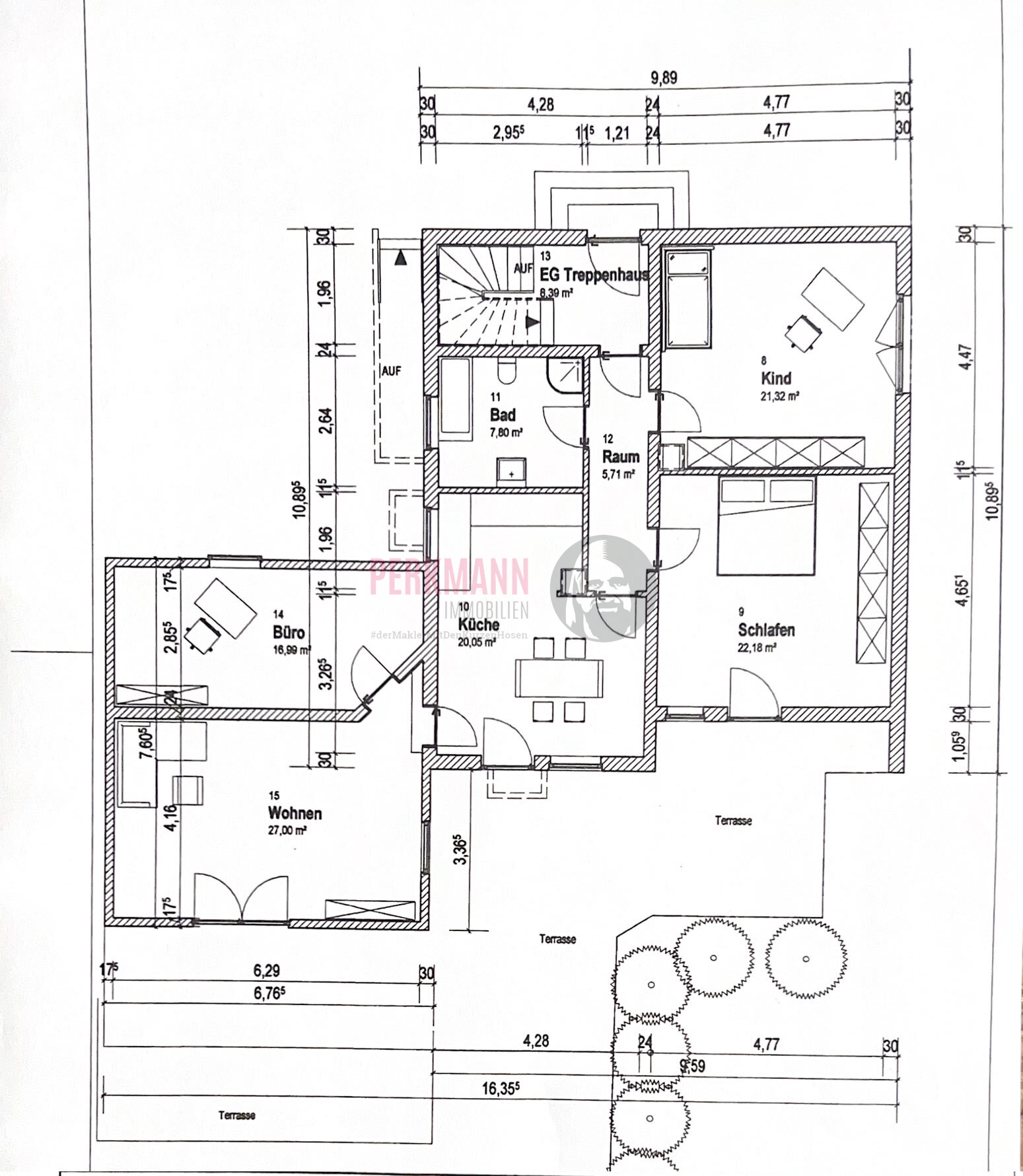Der Anbau im Erdgeschoss wurde 2003 getätigt, dadurch hat die Wohnung im 1.OG eine Dachterrasse bekommen.