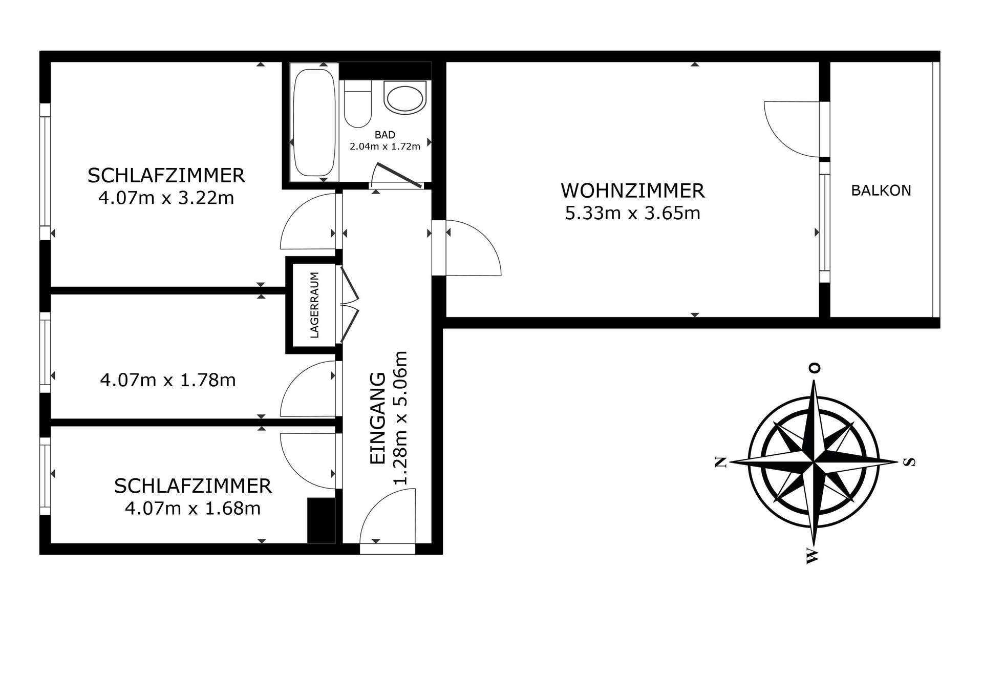 Beim Betreten der Wohnung gelangen Sie in einen einladenden Flur, der Ihnen Zugang zu den verschiedenen Räumen bietet. Links vom Eingang befindet sich ein gemütliches Schlafzimmer, das ausreichend Platz für Ihre persönlichen Möbel bietet. Direkt daneben liegt die separate Küche, die Ihnen die Möglichkeit gibt, eine moderne Einbauküche nach Ihren Vorstellungen zu gestalten.
